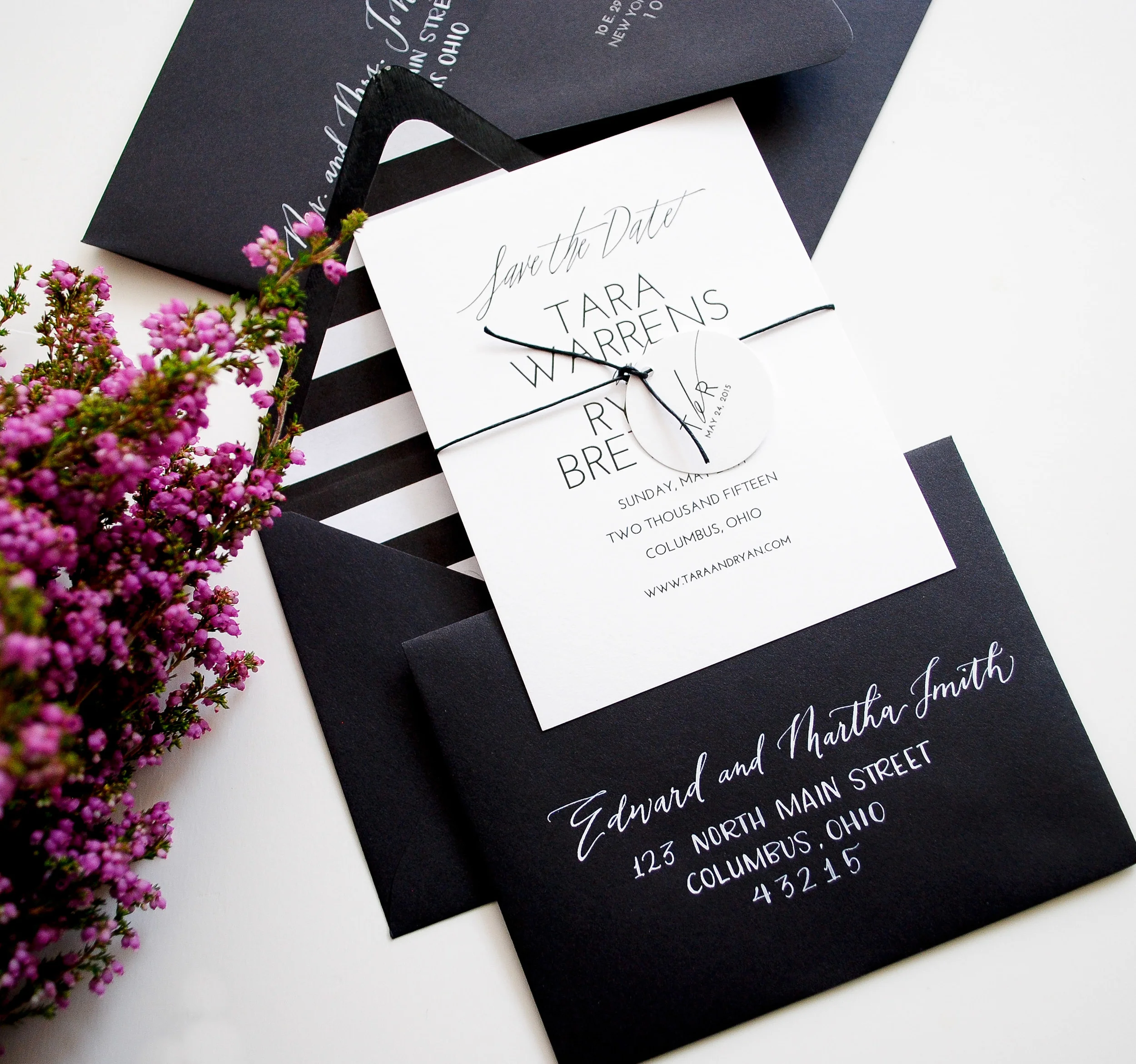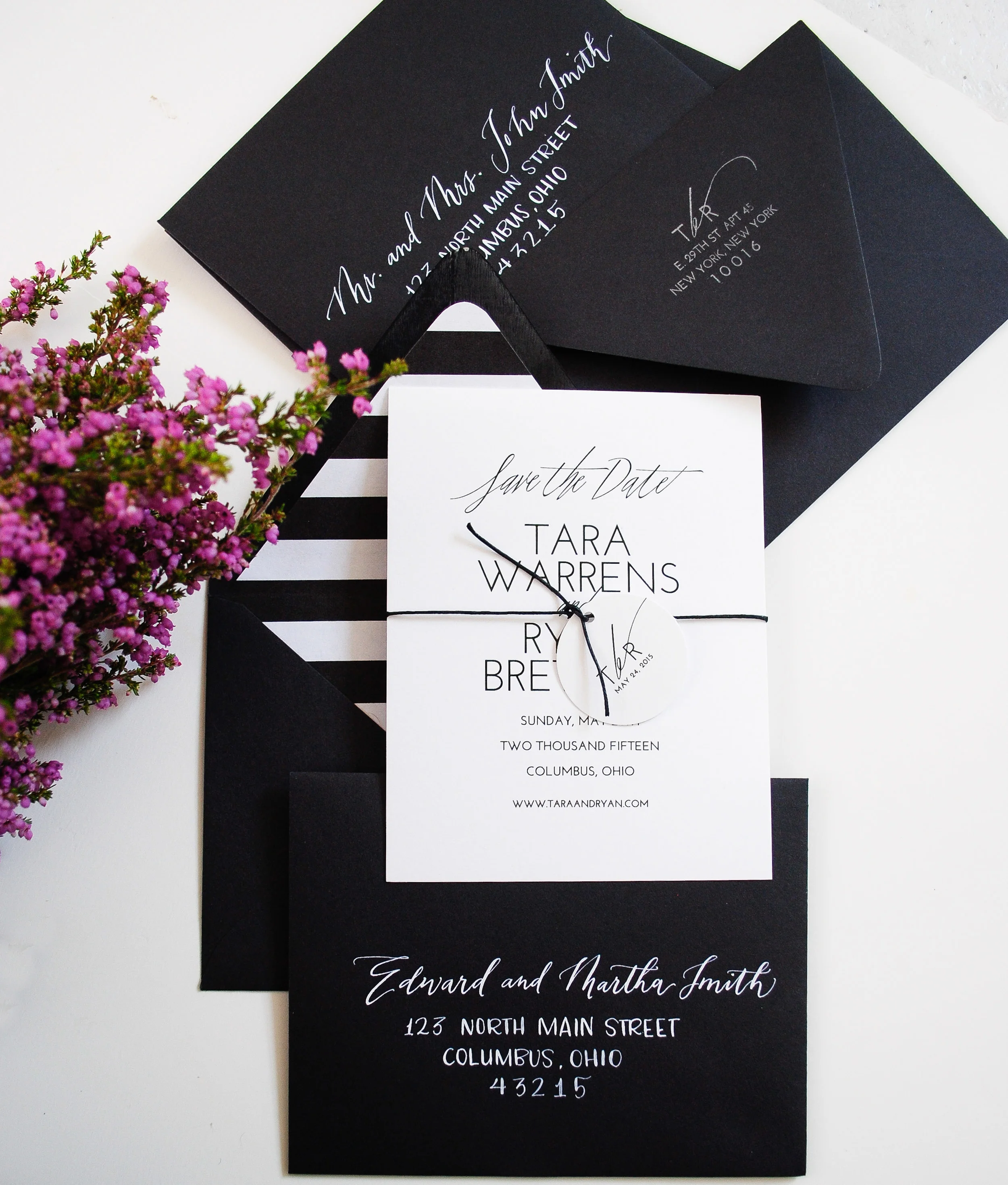 White hand calligraphy on black envelopes. Swoon. Our friends over at MMJ events have got this wedding in the works.
